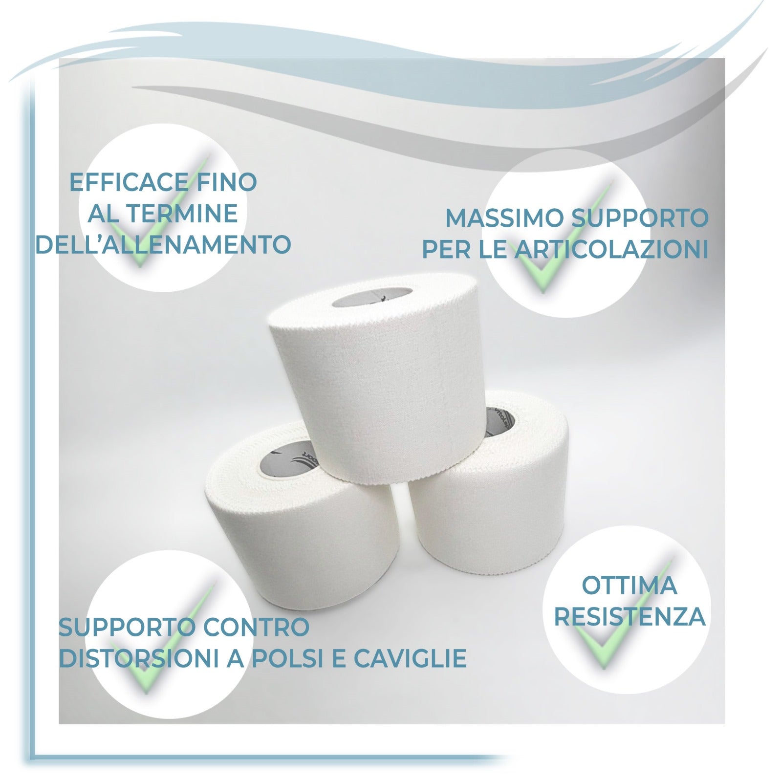 Nastro per fasciature sportive. Super resistente per garantire massimo supporto alle articolazioni durante l'esercizio agonistico.