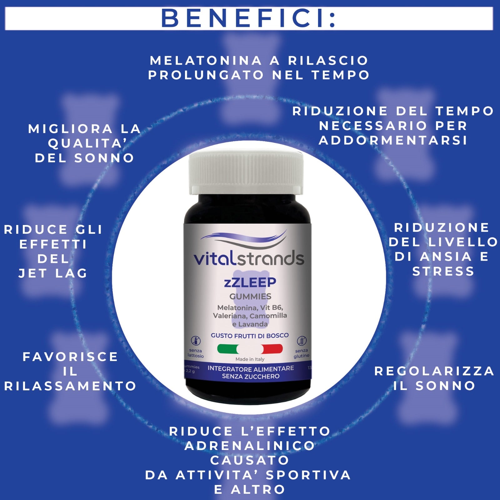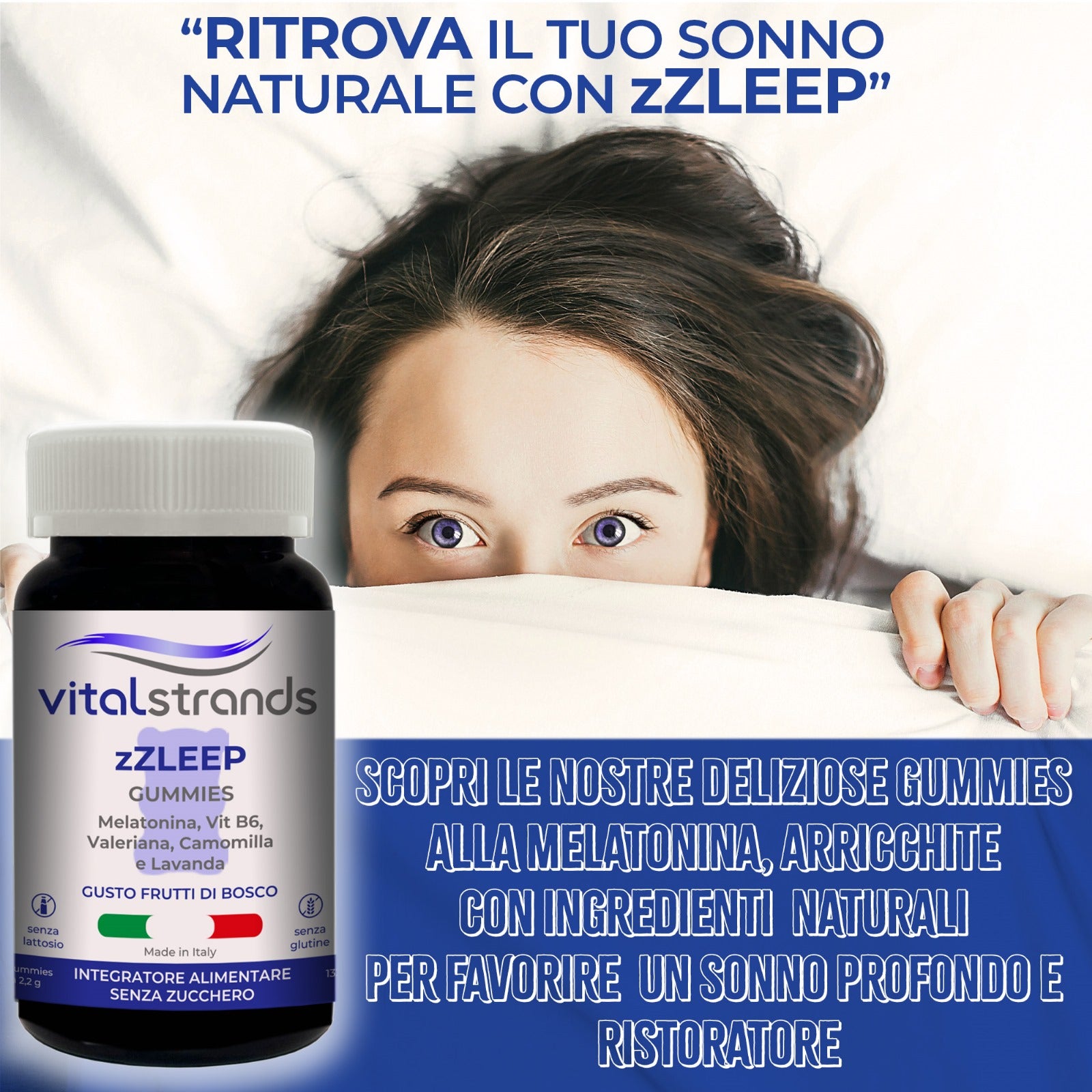 Stai cercando di un rimedio naturale per dormire? Vitalstrands zZLEEP orsetti gommosi è l'integratore che fa al caso tuo. Deliziose caramelle, facilissimi da assumere, studiate per addormentarsi rapidamente e garantire un sonno riposante.